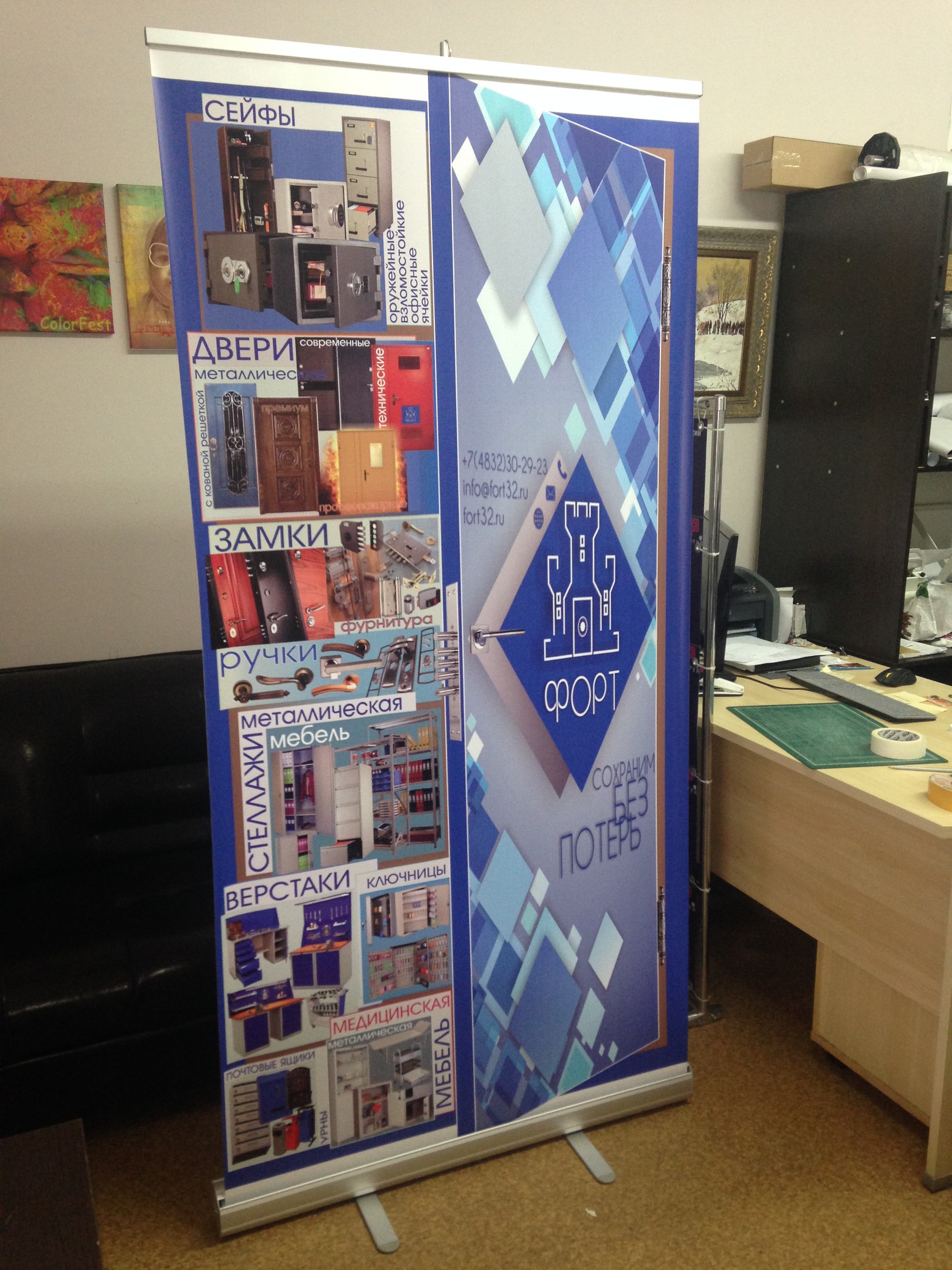 Ролл ап (роллап, roll up) - раздвижной мобильный стенд с механизмом автоматического сматывания в рулон информационного полотна.